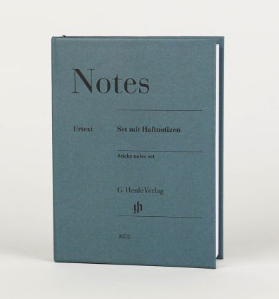 ヘンレ原典版デザインの付箋セット。ハードカバーの装丁は傷に強いマットフィルムでコーティングされており、開くと、大小の「gh」入り付箋と、青、緑、黄、ピンク、オレンジのネオンカラーのマーカーが収められています。練習、指導、音楽制作、またはデスクでの実用的なお供としてご活用ください。