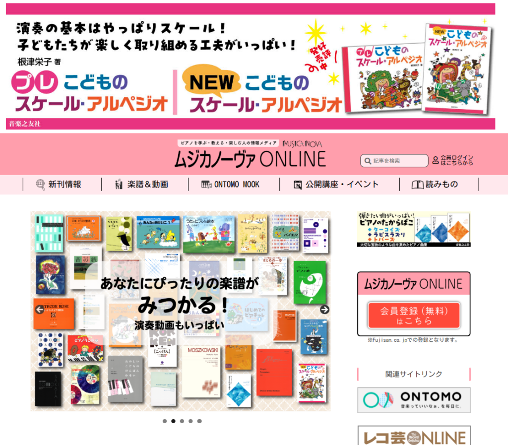 「ムジカノーヴァONLINE」では、読みものや公開講座・イベント情報、新刊情報などを随時更新、ピアノ指導者・学習者の方々が気軽に立ち寄り、また集える場として展開していきます。 ONTOMO MOOK「ムジカノーヴァ・シリーズ」の刊行予定も順次更新します。 ぜひ会員登録(無料)していただけますようお願いいたします。