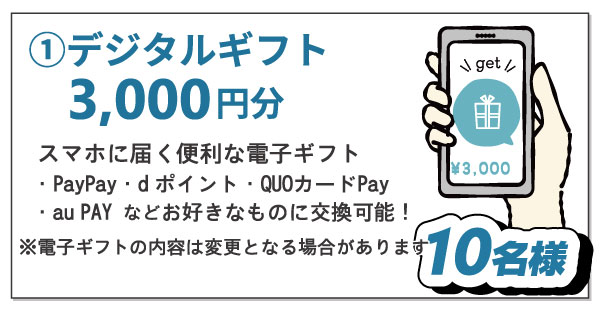また、本キャンペーンにご応募いただいた方のうち、はずれた方の中から抽選で50名様にデジタルギフト500円分が当たるWチャンスもご用意しました!
