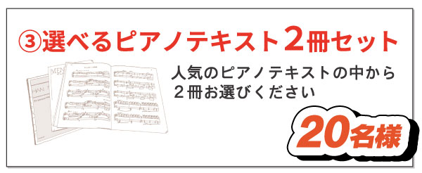 人気のピアノテキストの中から2冊お選びいただけます。気になっているテキストや新刊のお試しとしてぜひご利用ください!