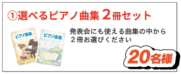 発表会にも使える曲集をセレクトしていますので、気になる曲集のお試しとしてぜひご応募してみてください!