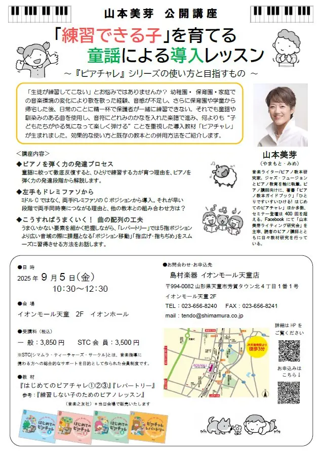 山本美芽先生による【「練習できる子」を育てる童謡による導入レッスン】~『ピアチャレ』シリーズの使い方と目指すもの~