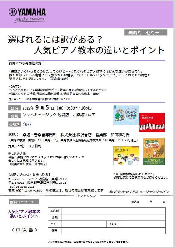 【無料ミニセミナー】選ばれるには訳がある?人気ピアノ教本の違いとポイント