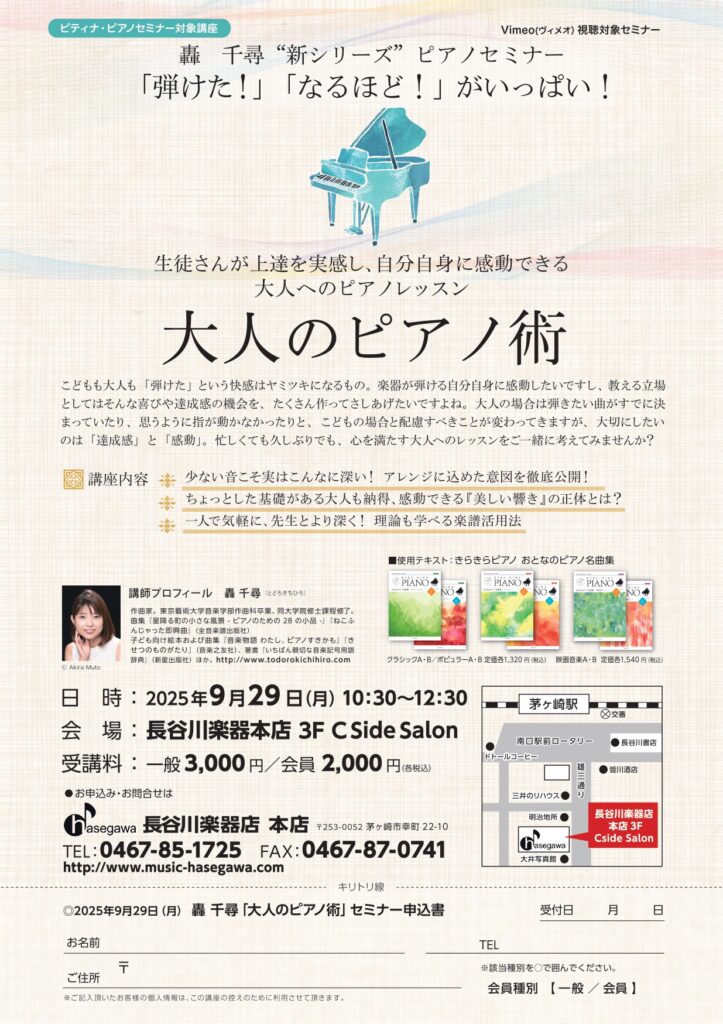 【轟千尋 ”新シリーズ”ピアノセミナー】生徒さんが上達を実感し、自分自身に感動できる大人へのピアノレッスン大人のピアノ術