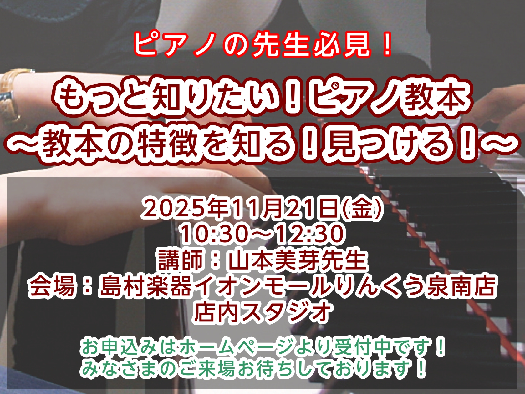 この講座では『バーナム』『ぴあのどりーむ』『オルガンピアノ』『きらきらピアノ』などの人気教材を、つまづきポイント別に”先回り"して活用する方法を、具体的な例で紹介していきます♪