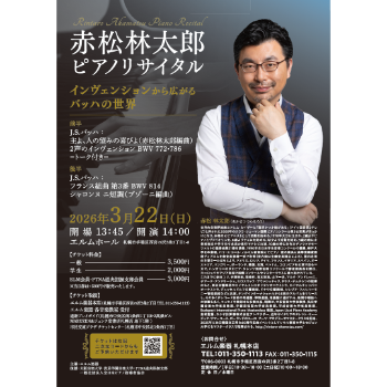 この機会にぜひ、赤松林太郎の繊細さとエネルギーを併せ持つ演奏をご体感ください。