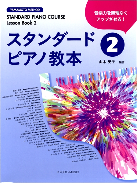 春のそよ風/いたずら子猫/小さな歌/みつばちマーチ/きらきら星/ほたる/ガボット/ロンドン橋/君の瞳に/ハ長調の練習/楽しいパーティー/夜のお星さま/きつつき/こぎつね/きよしこの夜/ト長調の練習/かわりばんこ/小鳥だったら/ロング ロング アゴー/ひいらぎ かざろう/ヘ長調の練習/陽気なサリー/アマリリス/白バラの匂う夕べは/星の世界/ポンポンピアノ/バラのワルツ/山の音楽家/オーラ・リー/遠き山に日は落ちて