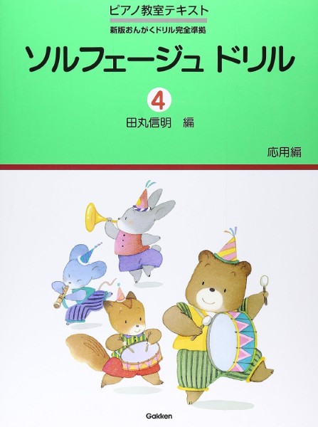 『新版おんがくドリル』に完全準拠。ソルフェージュに必要なリズム練習、聴音、視唱、視奏、リズム聴音、記譜、楽典などを無理なく学べるよう構成されています。第4巻では、臨時記号、くり返し記号、音名、音程、3連符、16分音符・16分休符、付点8分音符などを学習します。