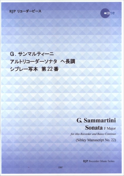 RP G. サンマルティーニ アルトリコーダーソナタ へ長調 シブレー写本第22番