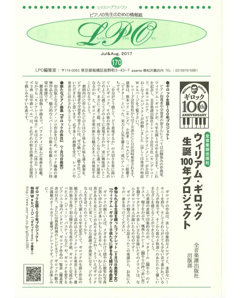 巻頭ウィリアム・ギロック 生誕100年プロジェクト(全音楽譜出版社)