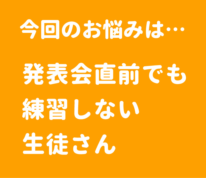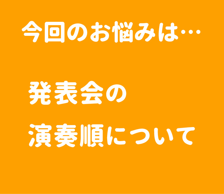 【お悩み】LPO No.218より 本人の強い希望で曲を決定したものの、本番直前になっても仕上がらず・・・。仕方なく、音数を減らしたり途中をカットして対応したのですが、今度は親から「ここは弾かせたい」と要望があり困ってしまいました。 本番は何とか形になり、本人は好きな曲が弾けて満足そうでしたが、これでよかったのでしょうか? (T.A先生) >>>まるみえ先生の回答を読む |